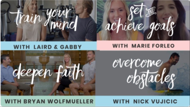 (Valued at $99). Includes "Set & Achieve Goals" with Marie Forleo. and "Overcome Obstacles" with Nick Vuijic.